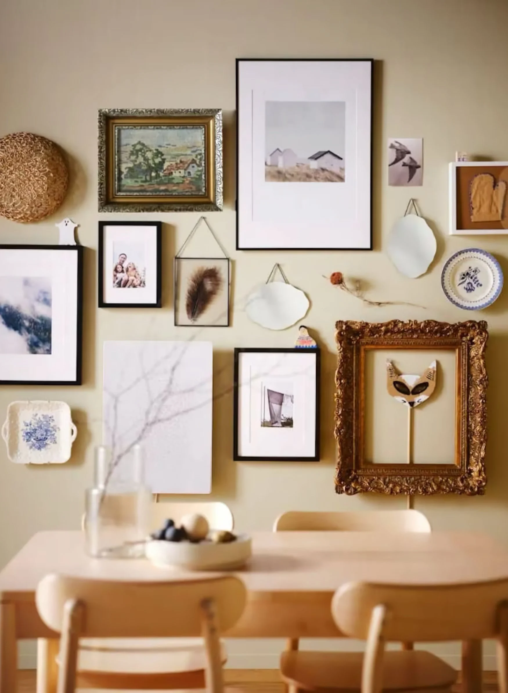 Location: An eclectic gallery wall is a great addition to living and dining areas, but it truly shines in kids' rooms. Its playful and creative nature allows for endless possibilities, making it a fun and dynamic focal point.